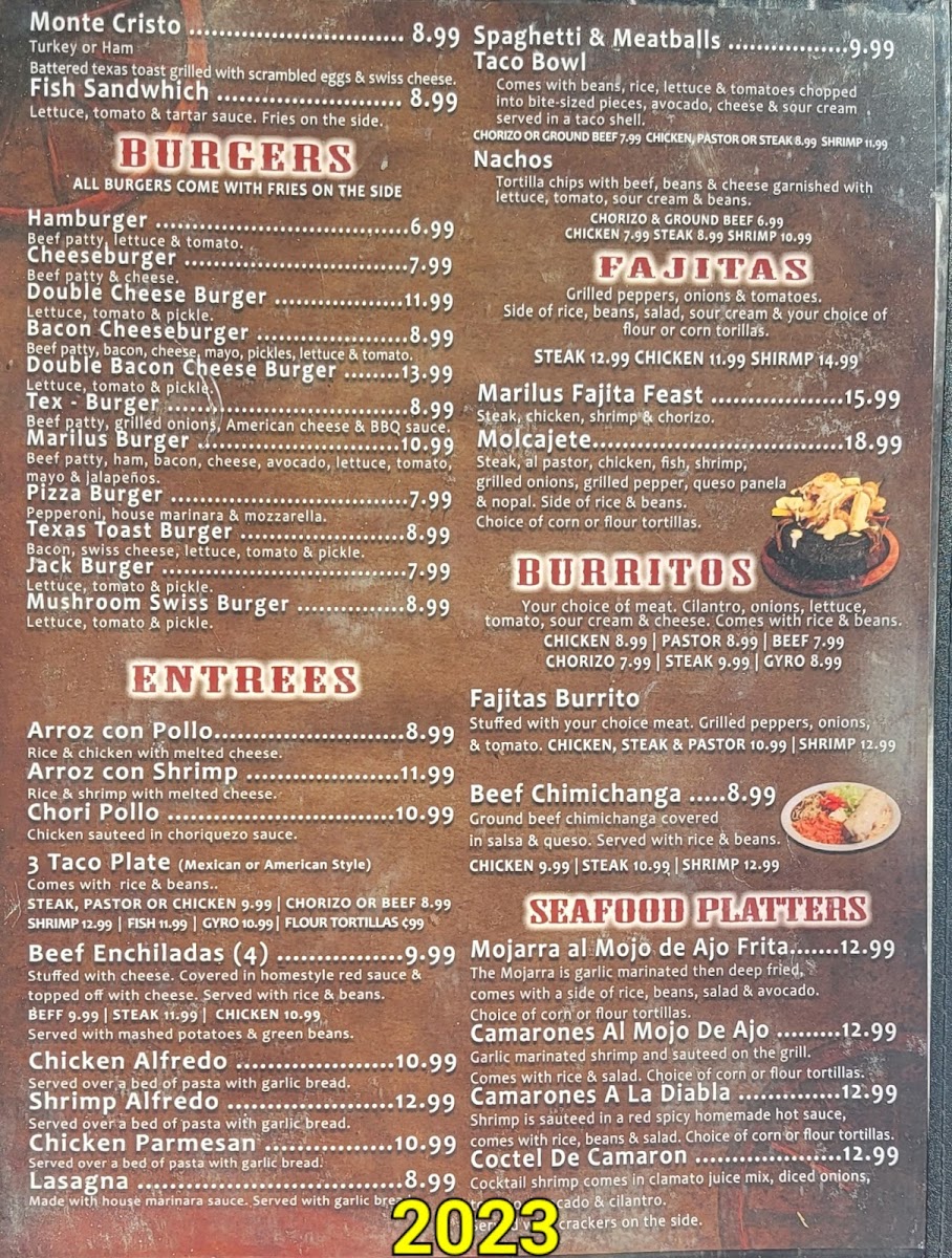 © 2026 Marilus Family Restaurant Mexican & American Food All Right Reserved.